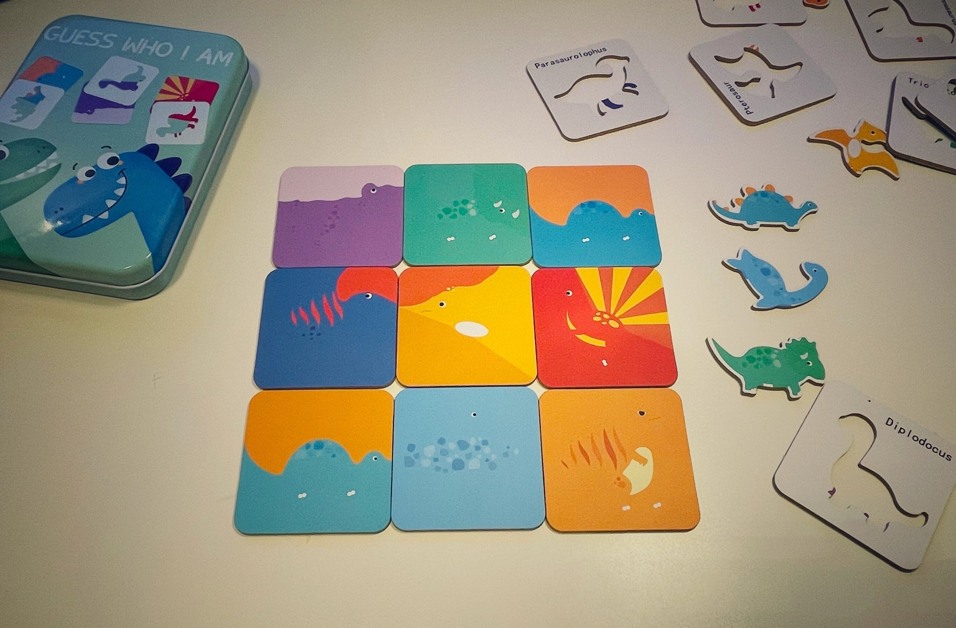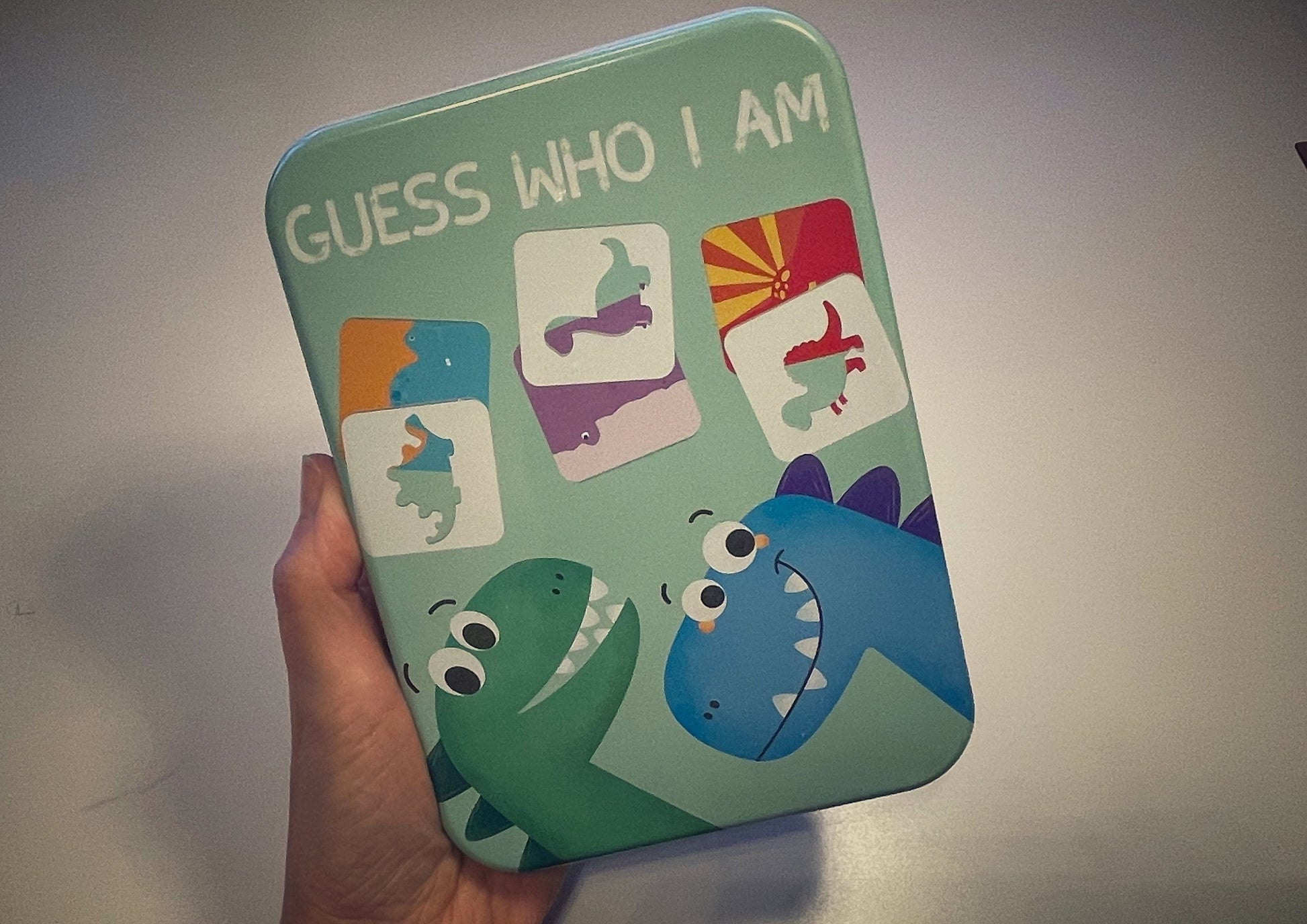 A brilliant and diverse jigsaw card game for our little (3-5yrs) dinosaur hunters! There are 3 cards; 1 picture card with a matching colour splash on the back, a cut out card, and a dinosaur shaped card. The game encourages colour recognition, spacial awareness, fine motor skills, imagination and story telling. And all it needs is little hands (no batteries!). The product is plastic free, the cards are durable, thick cardboard and the box is tin. Easy to play, easy to store, easy to love!